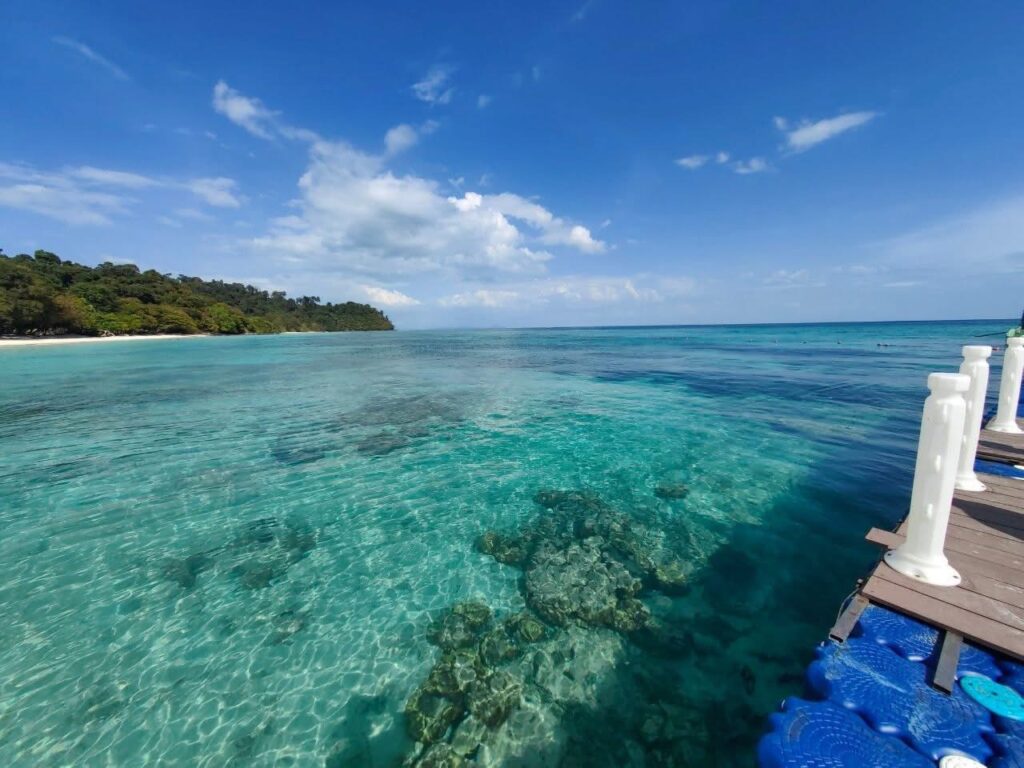 Koh Rok is one of the most beautiful islands in the Andaman Sea, located south of Koh Lanta within the Mu Ko Lanta National Park. Its crystal-clear waters allow you to see vibrant coral reefs and schools of colorful fish with remarkable clarity. The soft, white sandy beaches are perfect for relaxing, swimming, and both shallow and deep snorkeling.